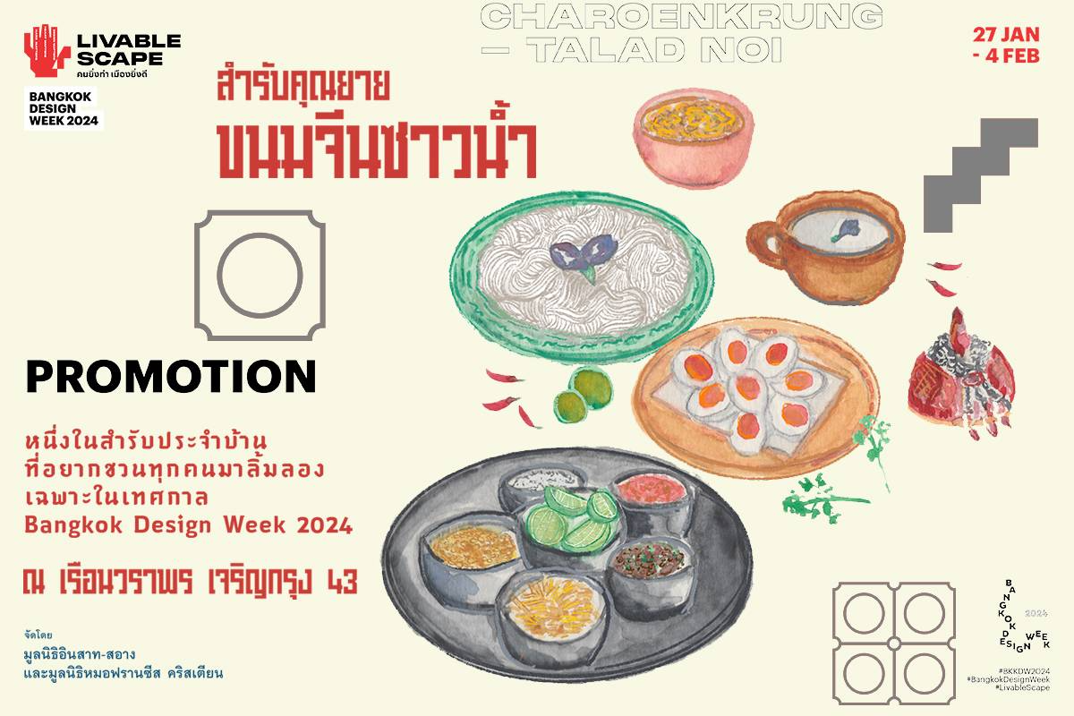 และในช่วงเทศกาล Bangkok Design Week เรือนวราพร จะเปิดเรือนต้อนรับให้ผู้ทีมาเยือนได้ลิ้มลองสำรับประจำครอบครัว คือ ขนมจีนซาวน้ำ ตลอด 9 วันของการจัดงาน