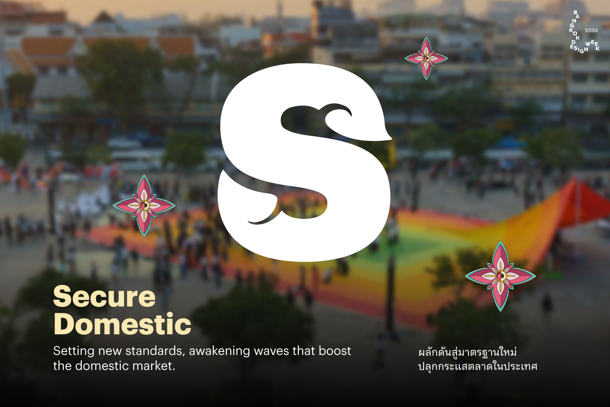 “Secure Domestic” คือการสร้างฐานรากให้มั่นคง แล้วผลักดันมาตรฐานของงานออกแบบไทยให้แข็งแรงขึ้น พร้อมยกระดับตลาดในประเทศให้คึกคัก เมื่อคนไทยเห็นคุณค่าของงานออกแบบไทย และเลือกใช้ผลงานของคนไทยมากขึ้น เศรษฐกิจสร้างสรรค์ก็จะกลายเป็นพลังสำคัญในการขับเคลื่อนประเทศ