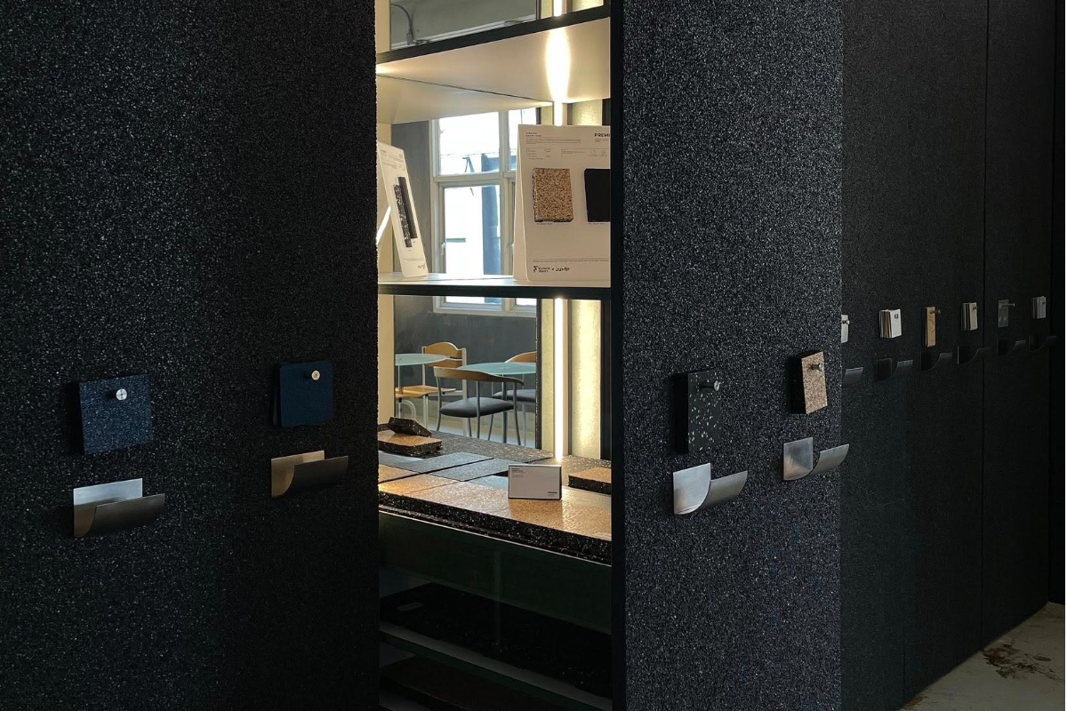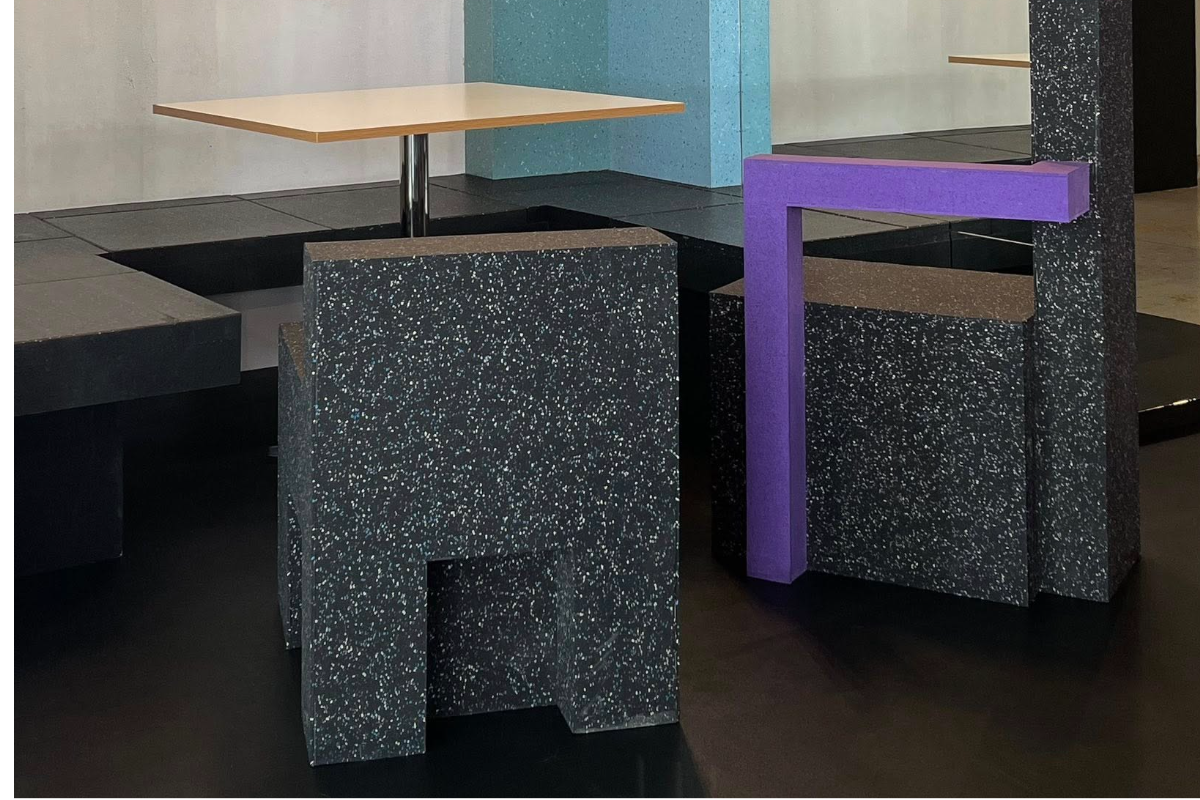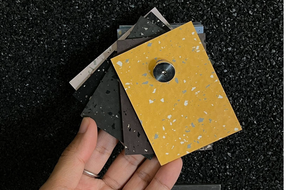 งานออกแบบที่จัดแสดงในครั้งนี้เป็นผลงานของ Metaphor Design Studio ซึ่งเป็นสตูดิโอที่เชื่อว่า "การออกแบบที่ดีคือการเล่าเรื่อง" และครั้งนี้เรื่องราวของพวกเขาก็เริ่มต้นจากความบังเอิญที่ได้พบกับ "เศษกระเบื้องยาง" ที่เหลือจากการติดตั้ง จากเศษวัสดุที่ไร้ค่าในสายตาใครหลายคน Metaphor กลับมองเห็นศักยภาพที่ซ่อนอยู่ ทั้งในแง่ของรูปทรงเรขาคณิตที่ไม่สมบูรณ์ สีสันที่หลากหลาย และความยืดหยุ่นของวัสดุที่เชื้อเชิญให้เกิดการทดลอง