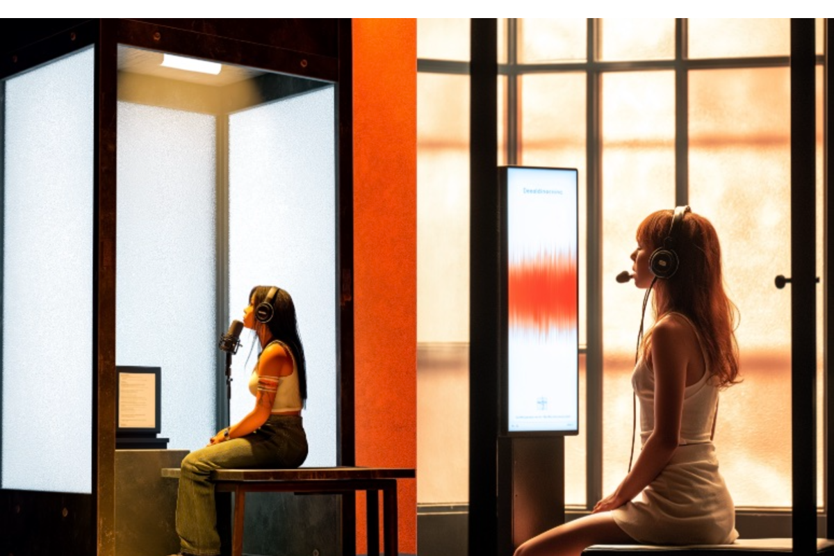 เสียงของคุณจะไม่หายไปไหน แต่ถูกแปลงเป็นภาพแสง สี และการเคลื่อนไหวแบบเรียลไทม์ คลื่นภาพเหล่านี้จะถักทอรวมกันกลายเป็นพรมแสงขนาดใหญ่ที่ฉายอยู่ด้านนอกตู้
