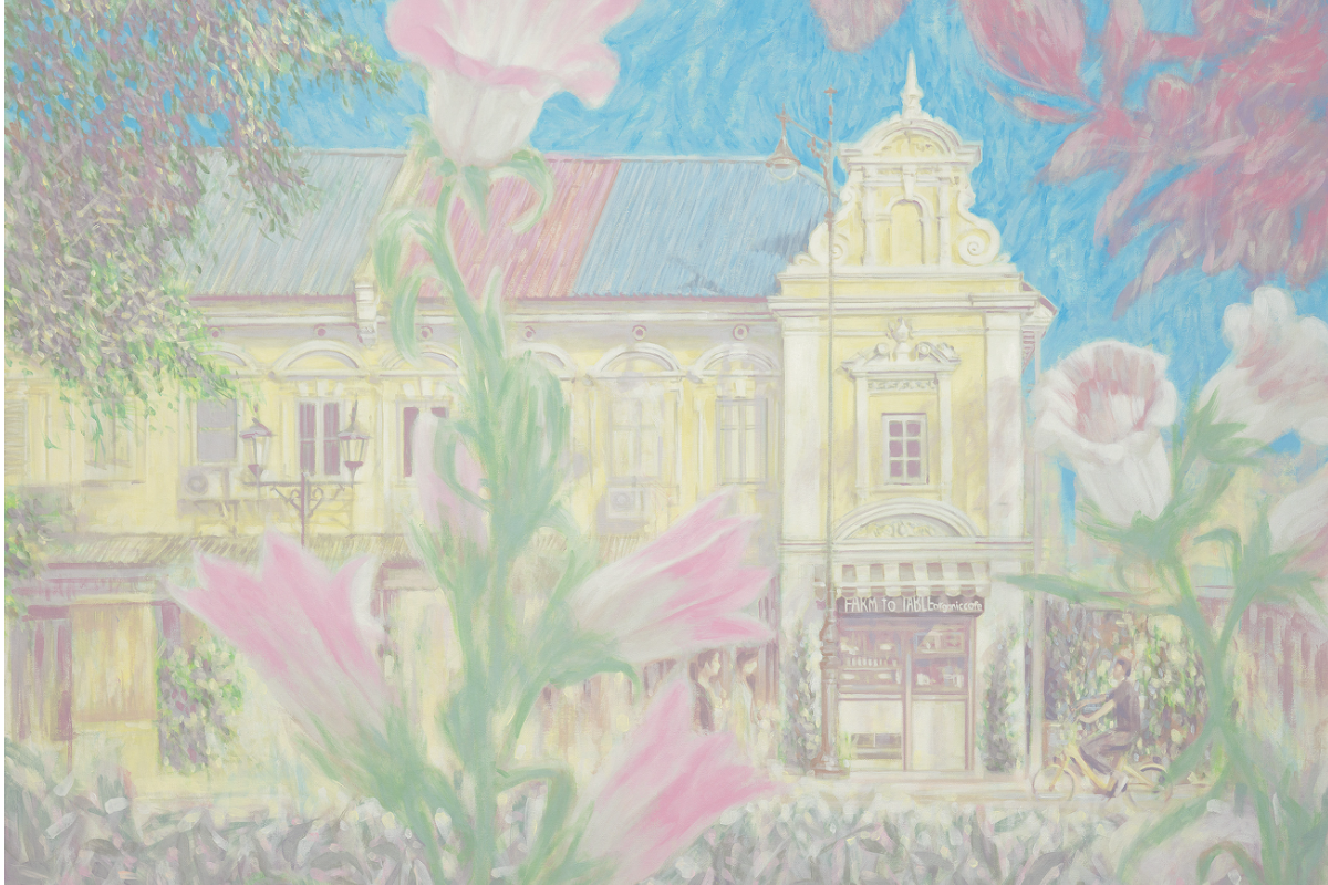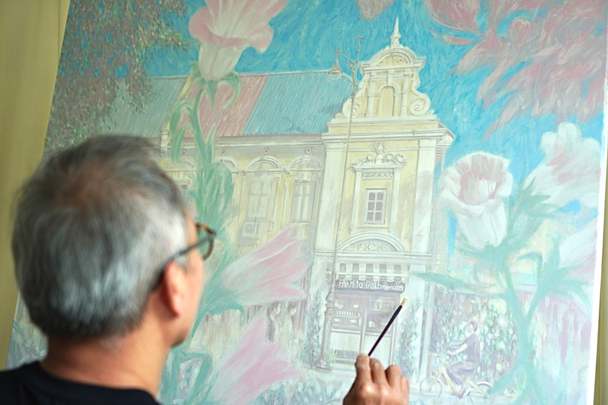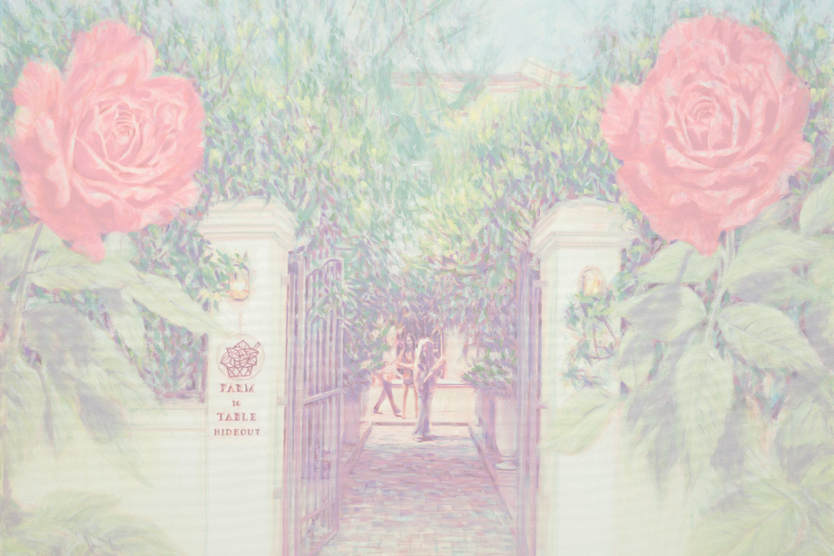 อีกหนึ่งอาคารโบราณเพียงหลังเดียวที่ยังเหลือให้เห็นหน้าตาของอาคารเดิมตั้งแต่สมัยรัชกาลที่ 5 เนื่องจากผู้เช่ารายอื่นๆ ทุบตึกทำเป็นโกดังไปหมดแล้วก่อนที่ทางกรมศิลปากรจะเข้ามาทำการอนุรักษ์ ประตูรั้วสีขาวที่ซ่อนตัวอยู่ในย่านปากคลองตลาดมีร้านเล็กๆ Farm to table, Hideout สถานที่ที่เป็นที่เติมพลังกายพลังใจ ที่ยังเก็บร่องรอยของการก่ออิฐทรงโค้งอายุร้อยกว่าปีไว้ที่ผนัง เก็บประตู หน้าต่างและเลย์เอาท์อาคาร รวมถึงบันไดเดืมของตัวอาคารไว้ให้พวกเราได้สัมผัส และด้วยเมนูของร้านอย่างผักออร์แกนิคสดๆจากสวน และเจลาโต้ที่กินแล้วรู้ว่าใช้วัตถุดิบที่ดี ผมมักไปที่นี่ทุกครั้งเมื่อผมไปซื้อดอกไม้ที่ปากคลองตลาด ที่เลือกกุหลาบมาวาดกับ Farm to table เพราะผมชอบดอกกุหลาบ รู้สึกว่ากุหลาบเป็นการสื่อสารถึงการมอบความรัก ความปรารถนาดีให้กัน ที่สามารถขับเคลื่อนให้เราทำบางอย่างได้ด้วยพลังของความรัก.