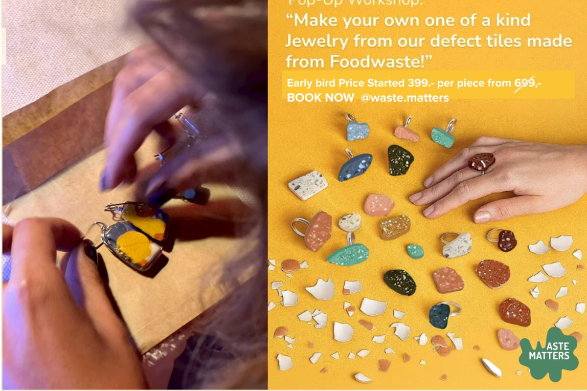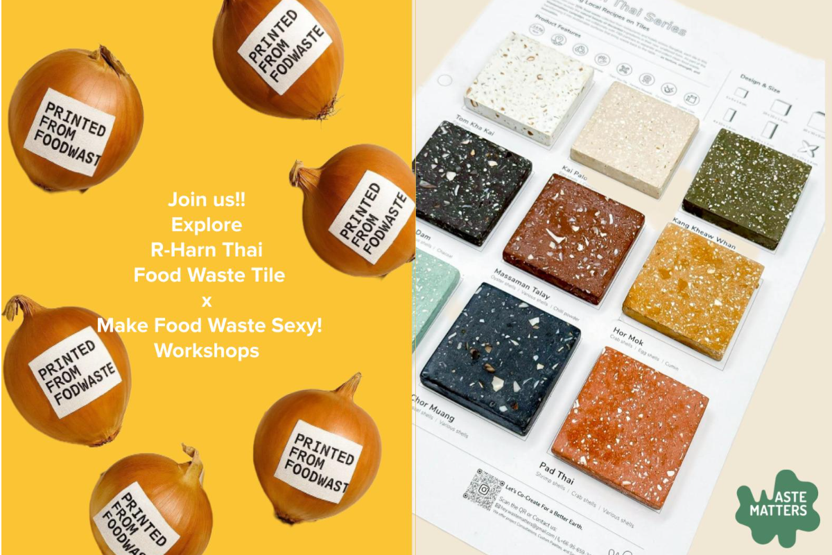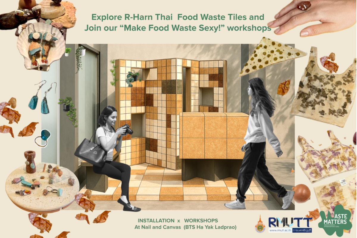 นักวิจัยและสถาปนิกได้ผลิตกระเบื้องจากเศษอาหารสะอาดมากกว่า 20% ที่เก็บรวบรวมจากร้านอาหารและโรงแรมทั่วกรุงเทพฯ กระเบื้องในคอลเลกชันนี้เผยให้เห็นความงามตามธรรมชาติของวัตถุดิบที่ถูกทิ้งในรูปแบบดั้งเดิมโดยไม่ผ่านการปรุงแต่ง ในฐานะส่วนหนึ่งของแคมเปญ Wastematters เราร่วมมือกับพันธมิตรในอุตสาหกรรมอาหารและเครื่องดื่ม (F&B) เพื่อคัดแยกและรวบรวมเศษอาหารสะอาด นำกลับมาแปรรูปเป็นพื้นผิวที่ยั่งยืน เปลี่ยนของเสียให้กลับมามีคุณค่าอีกครั้ง — ในรูปแบบของพื้นผิว ความแข็งแรง และนวัตกรรม