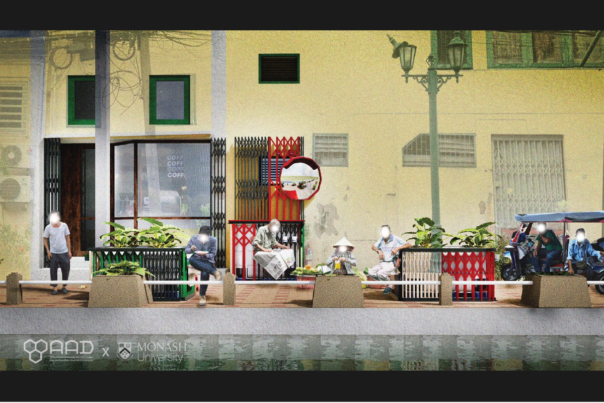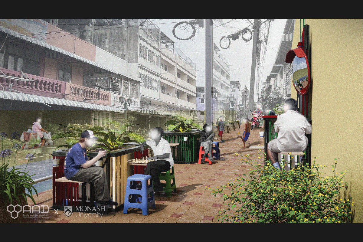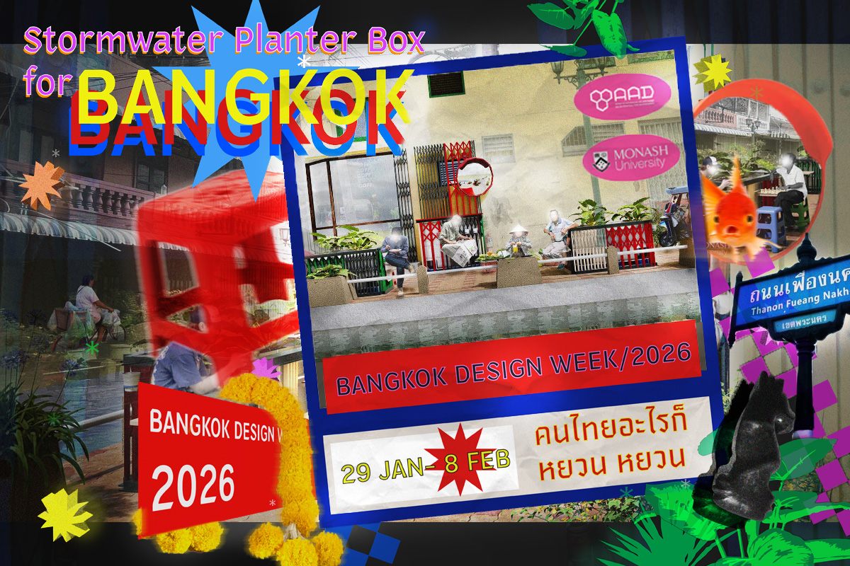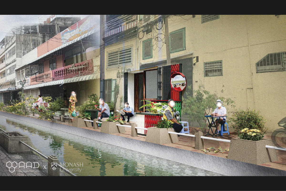 ดร.เจียนบิน หวัง นักวิจัยที่ส่งเสริมโครงสร้างพื้นฐานแบบมัลติฟังก์ชันและใช้แนวทางเศรษฐกิจหมุนเวียนเพื่อนำเสนอภาพเมืองที่มีความอ่อนไหวต่อน้ำในระดับพื้นที่ และ ธิติภัทร ชนะฤทธิชัย ผู้ช่วยวิจัยเศรษฐกิจของหน่วยงาน Water Sensitives Cities Australia ของ Monarch University ร่วมมือกับทีมอาจารย์ บุคลากร และนักศึกษาจากคณะสถาปัตยกรรม ศิลปะและการออกแบบ สถาบันเทคโนโลยีพระจอมเกล้าเจ้าคุณทหารลาดกระบัง, ดร.ชนิภรณ์ ธรรมพนิชวัฒน์, ลิมปศิลป์ ศิริศักดิ์, ปัญญพัฒน์ สมงาม, ภคิน อนันตวัชกร, ทักษพร เพชรหลาย และ พริมา ไพบูลย์พุฒิพงศ์