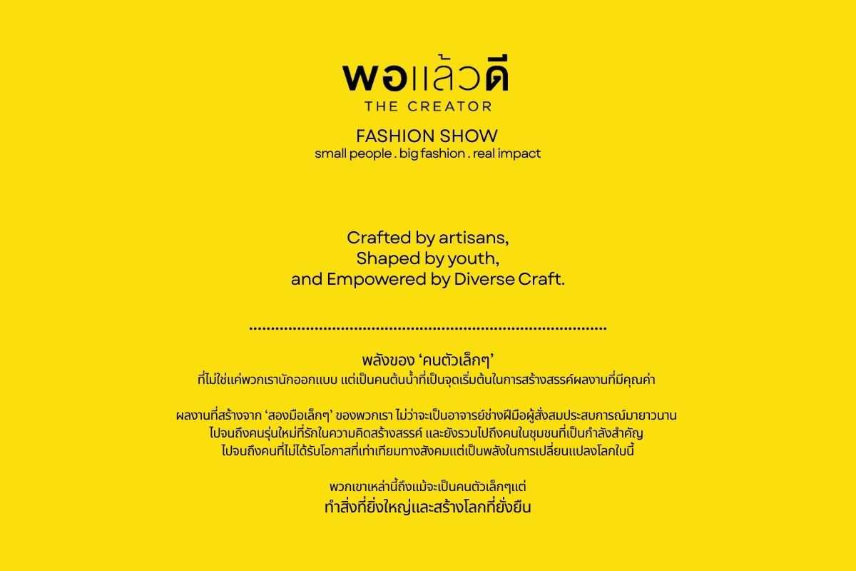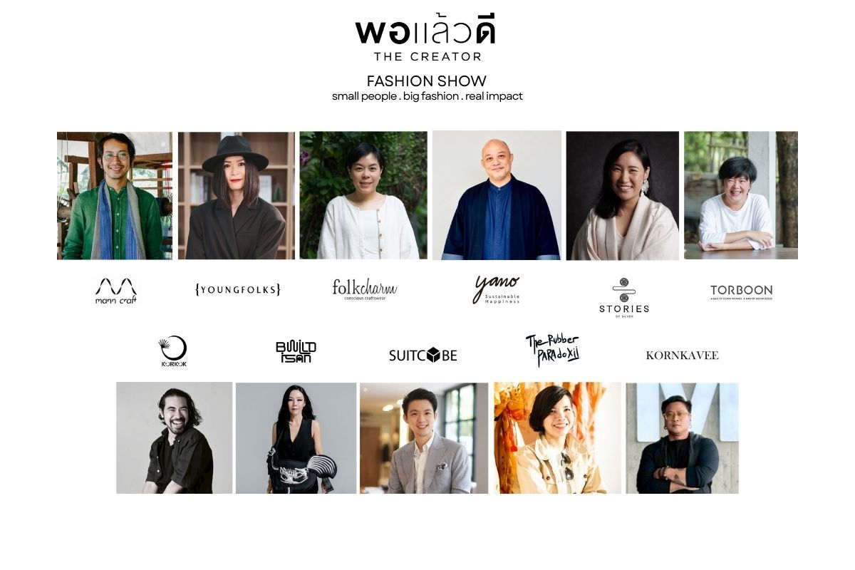 ผลงานของ 11 "พอแล้วดี" ดีไซเนอร์จากเครือข่ายนักออกแบบที่ขับเคลื่อนธุรกิจด้วยหลักปรัชญาเศรษฐกิจพอเพียง สร้างสรรค์ผลงานแฟชั่นอย่างรู้จักตนประมาณตน มีเหตุผล และมีภูมิคุ้มกัน พร้อมสร้างผลกระทบเชิงบวกต่อชุมชนและสังคมอย่างยั่งยืน