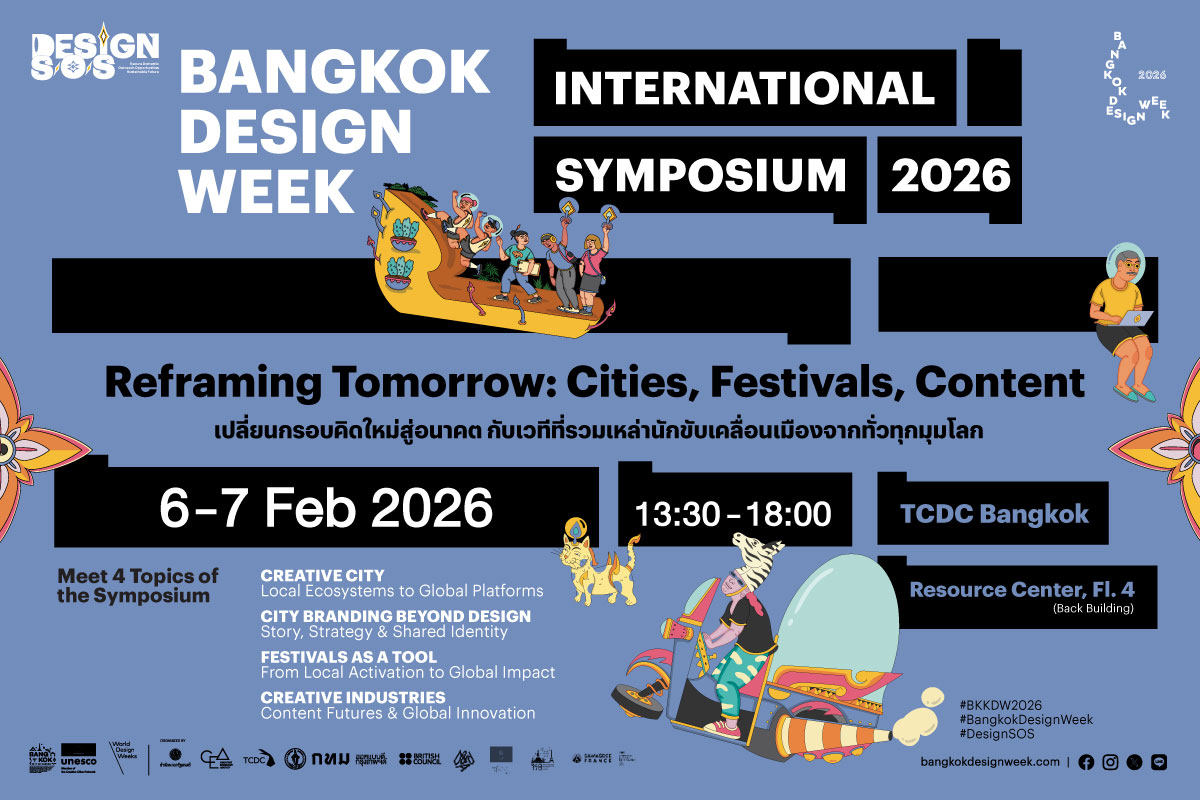 Bangkok Design Week International Symposium 2026 ขอเชิญทุกท่านร่วมเปิดมุมมอง แนวคิดและประสบการณ์จริงจากผู้เชี่ยวชาญด้านการขับเคลื่อนเมืองสร้างสรรค์จากทั่วโลก ภายใต้ธีม "Reframing Tomorrow: Cities, Festivals, Content" ผ่านบทสนทนาหลากหลายประเด็น ไม่ว่าจะเป็นเมืองที่มีเรื่องเล่า (Cities with Stories), ระบบนิเวศสร้างสรรค์ของเมือง (Creative Ecosystems), งานเทศกาลเพื่อการเสริมพลัง (Festivals for Empowerment) และคอนเทนต์ที่ช่วยขับเคลื่อนผู้คน (Content that Drives People)