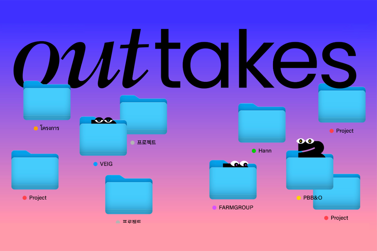 OUTTAKES คือโปรเจกต์นิทรรศการออนไลน์จาก PBB&O, FARMGROUP, Hann และ VEIG ที่หยิบผลงานออกแบบฝั่ง B-Cut — งานที่ไม่ได้ถูกเลือกในขั้นตอนสุดท้าย — กลับมาเล่าใหม่ เพื่อให้เห็นไอเดียและศักยภาพทางความคิดสร้างสรรค์ที่ยังไม่เคยได้รับการเปิดเผยมาก่อน