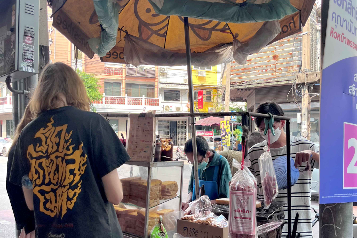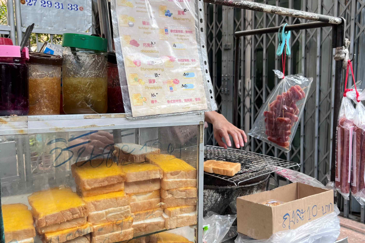 - ขนมปังปิ้งเตาถ่านป้าไน้ ปังปิ้งพริกเผากุนเชียงเจ้าเดียวในโลก ร้านรถเข็นที่เสิร์ฟความหอมอร่อยเป็นเอกลักษณ์ ปิ้งสด ๆ ร้อน ๆ ด้วยเตาถ่าน เป็นหนึ่งในร้านดัง ตำนานคู่ย่านเจริญกรุง-ตลาดน้อยที่พลาดไม่ได้!