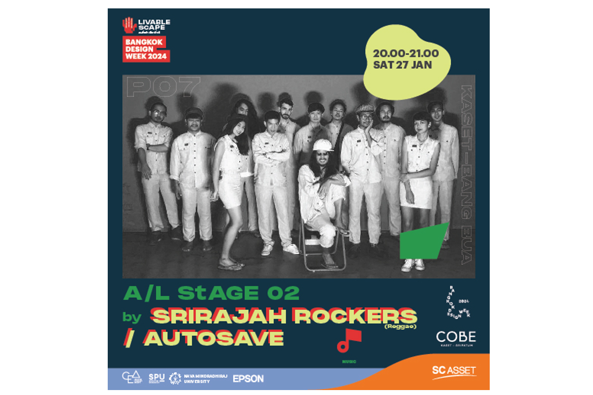SRIRAJAH ROCKERS, an Alternative/Root/Rock/Reggae band, attempts to blend Culture, Music, and Lifestyle to present new alternatives to Thai youth. In Bangkok Design Week 2024, SRIRAJAH ROCKERS is back once again, merging Soul, Funk, Trip Hop, Mento-Ska, and more.
