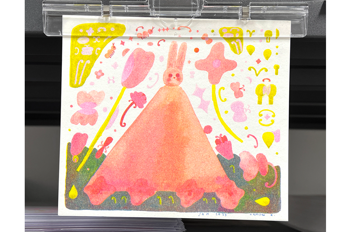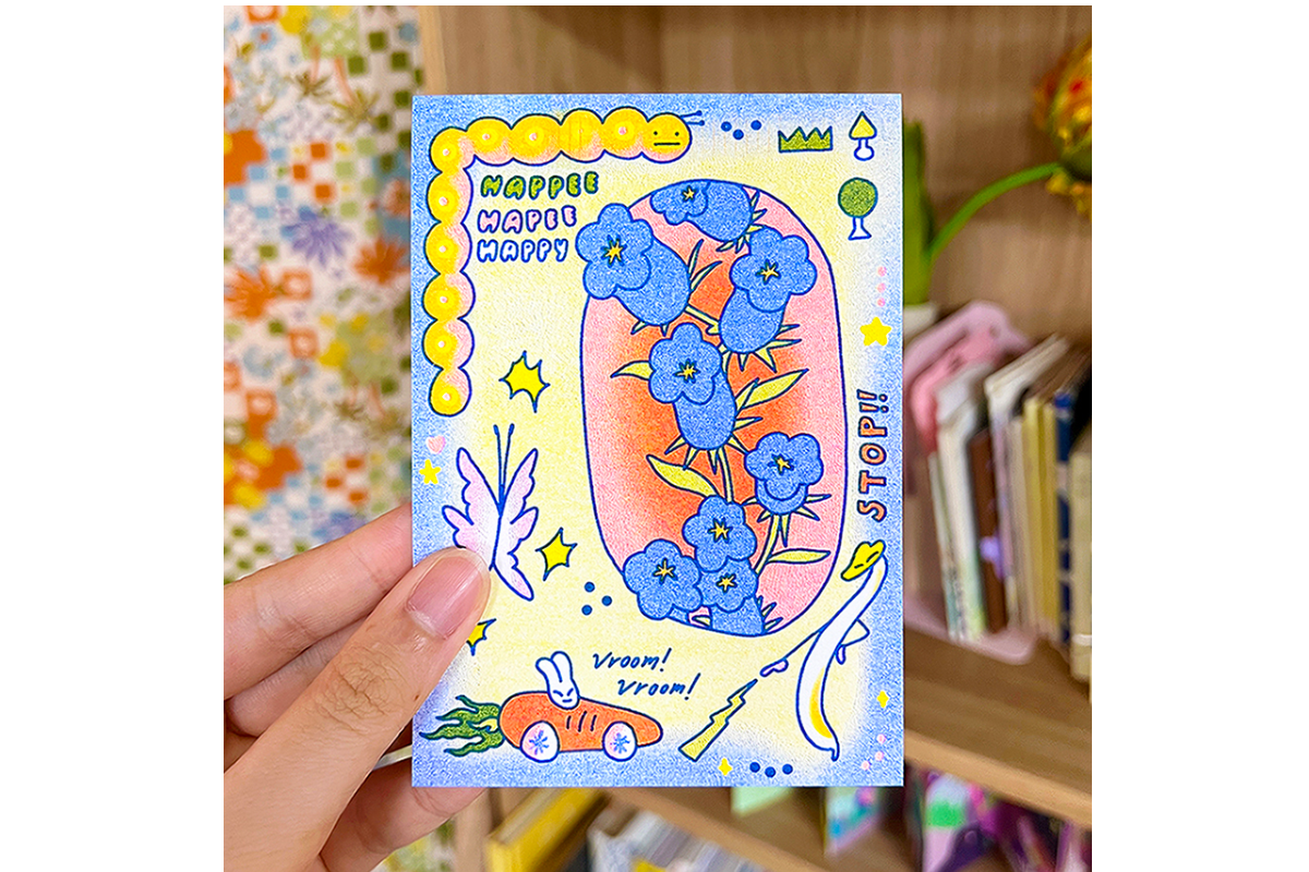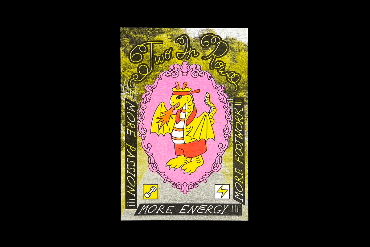 Two in Row is a Risograph studio that specializes in illustration and art books. Our studio collaborates with nine different Thai illustrators to create personal and rich narrative publications that combine the craftiness of Risograph with each illustrator's unique style.
