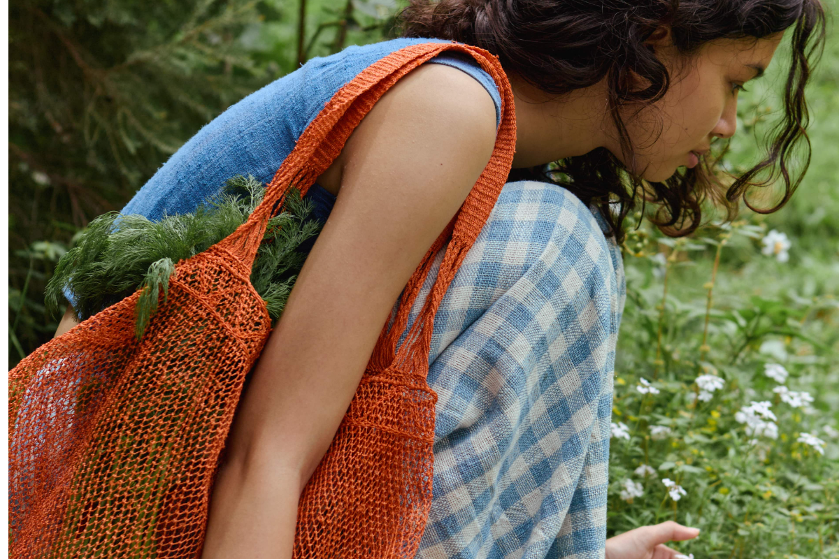 We use only indigenous fibers such as hemp, cotton, and piet jungle vine. These fibers are grown locally and sustainably. Our collections use all-natural dyes, featuring local botanicals and ancient dye recipes. Our production is rooted in traditional tools and skills, such as hand-powered cotton cleaning spinning wheels, wooden floor looms, and backstrap looms. We are a small-batch, zero-waste studio committed to ethical and ecological production.