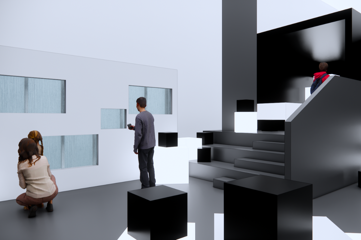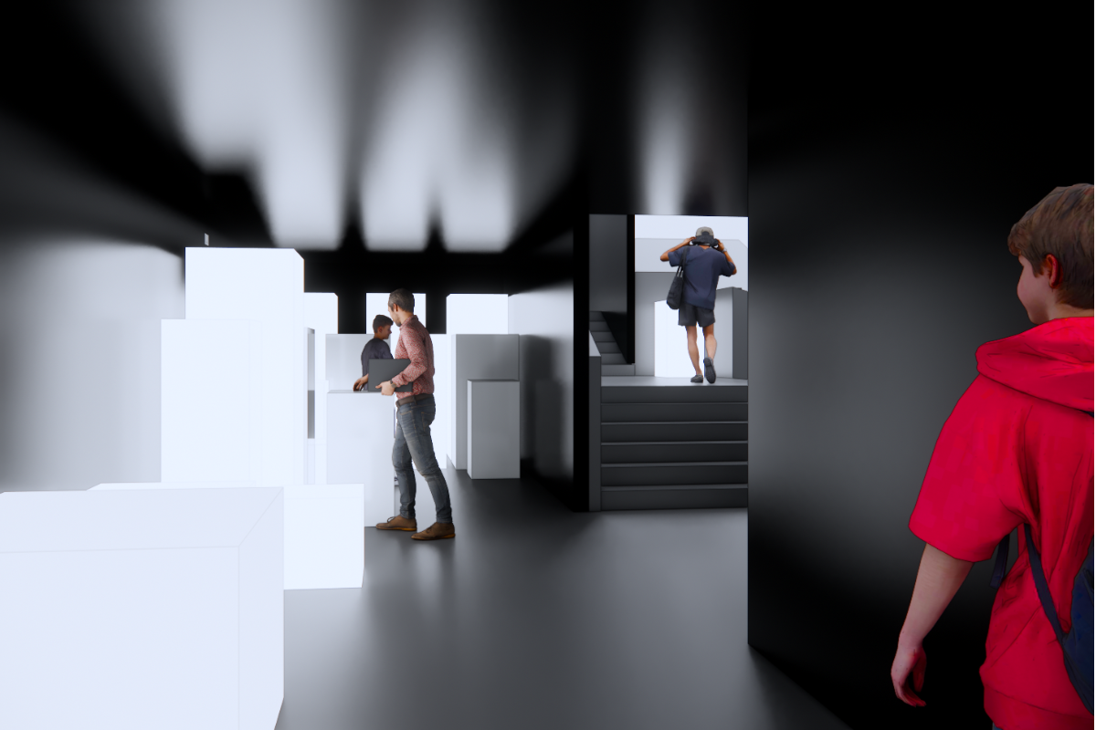 The exhibition space is divided into three main zones, portraying the journey of ideas from their point of origin, through development, to the moment when they are ready to be realized: