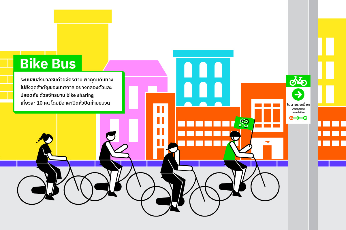 The BUCA S/O/S project demonstrates how cycling can address the city's urgent challenges amid global turbulence. We believe that promoting cycling in Bangkok can simultaneously alleviate traffic congestion, environmental issues, and public health concerns. The project comprises: